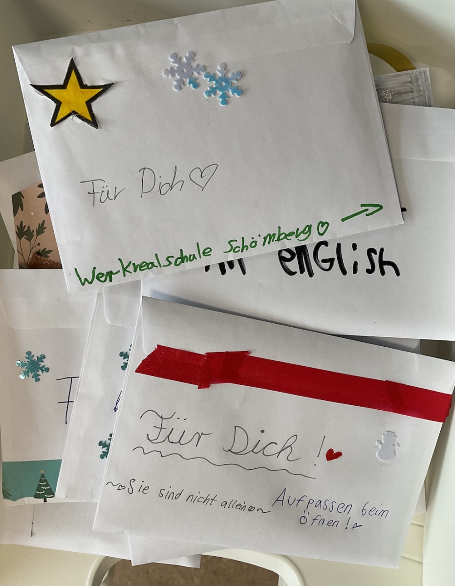 Die Grund- und Werkrealschule Schömberg nutzte am 21.11. den deutschlandweiten Vorlesetag, um den Aufruf der Caritas „Briefe gegen Einsamkeit“ zu unterstützen. Die Klassenlehrkräfte Mucz, Weigel, Reiber und Hafenscher der Klassen 5-8 verknüpften eine Vorleseaktion zum Thema Briefe in ihren Klassen, um zusammen mit den Grundschülern der Klasse 4 im Anschluss individuelle Briefe zu schreiben und zu gestalten. Diese 129 entstandenen Exemplare werden nun an die Caritas verschickt, die diese dann im Kreis an einsame Menschen verteilen, um ihnen eine kleine Freude zu bereiten.
